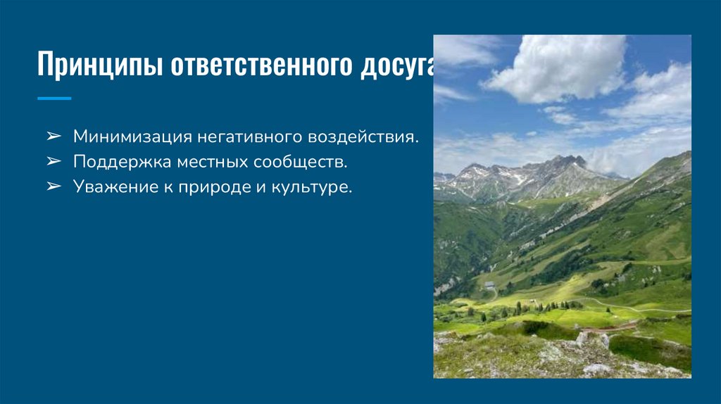 Принципы ответственного досуга➢ Минимизация негативного воздействия.