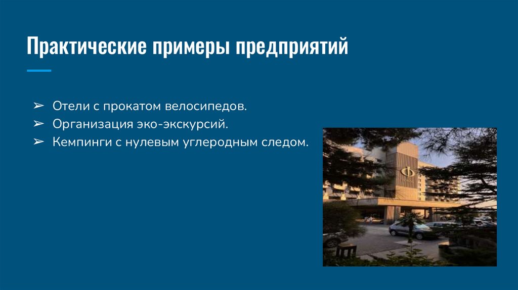 Практические примеры предприятий➢ Отели с прокатом велосипедов.