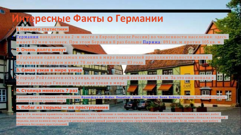 • Герм ан ия н ах одитс я н а 2 - м м е с т е в Европе (после России) п о численност и населения: здесь