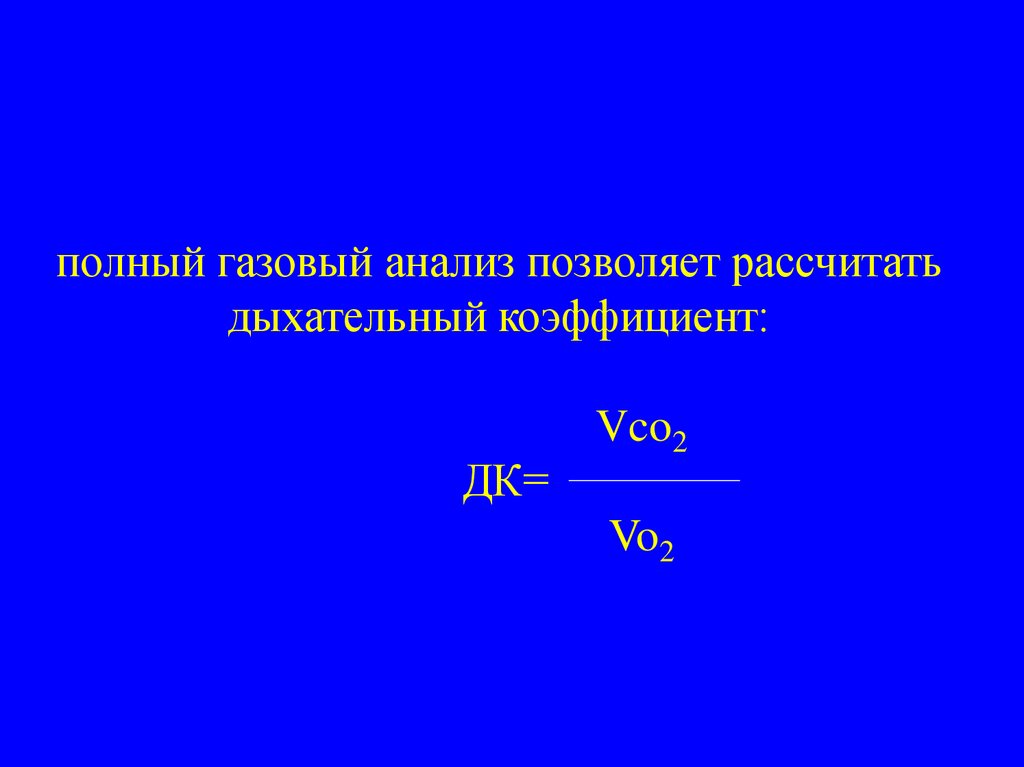 полный газовый анализ позволяет рассчитатьдыхательный коэффициент: