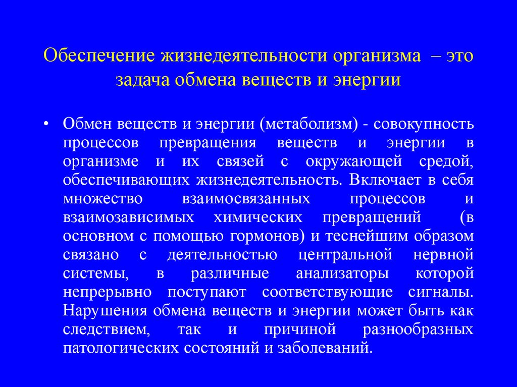 3. Обеспечение жизнедеятельности организма – это задача обмена веществ и энергии
