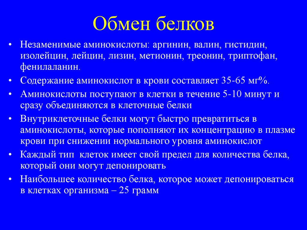 • Содержание аминокислот в крови составляет 35-65 мг%.
