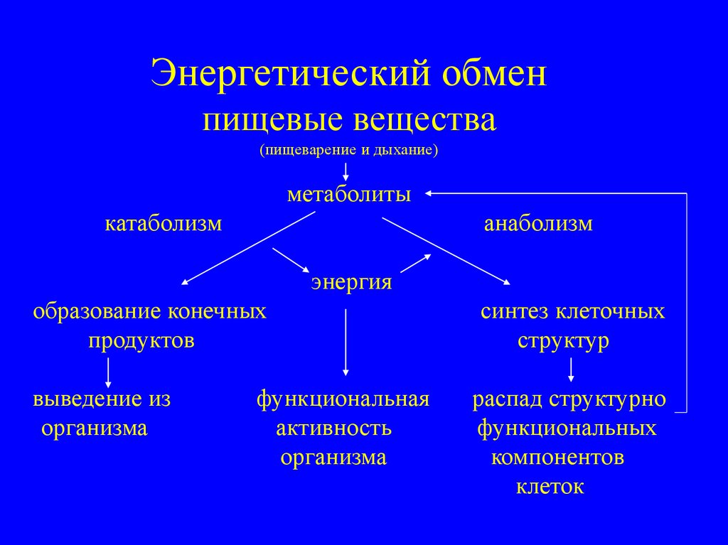 4. Энергетический обмен пищевые вещества (пищеварение и дыхание) метаболиты катаболизм анаболизм энергия образование конечных