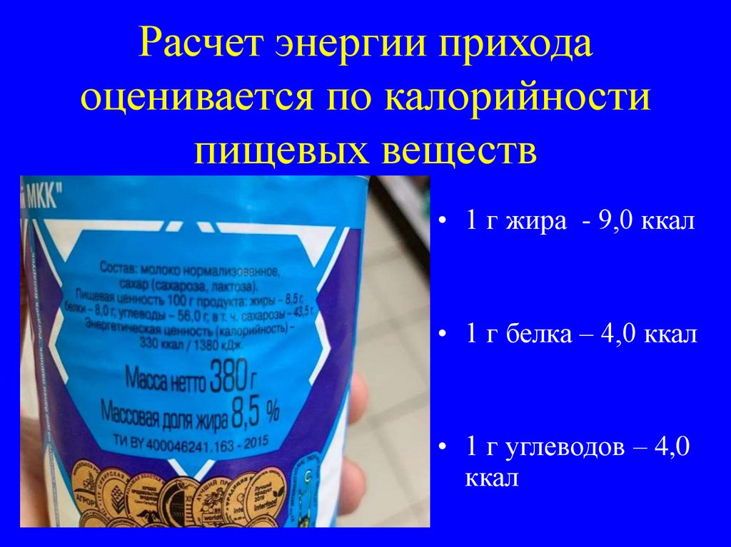 • 1 г жира - 9,0 ккал• 1 г белка – 4,0 ккал