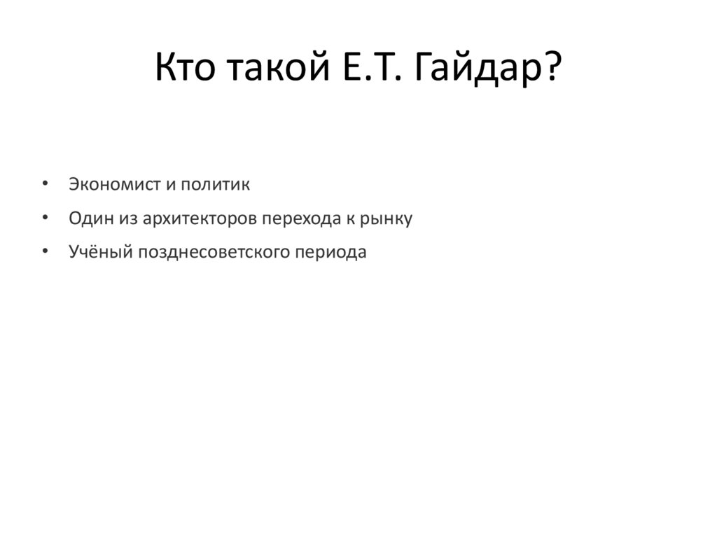 Кто такой Е.Т. Гайдар?• Экономист и политик
