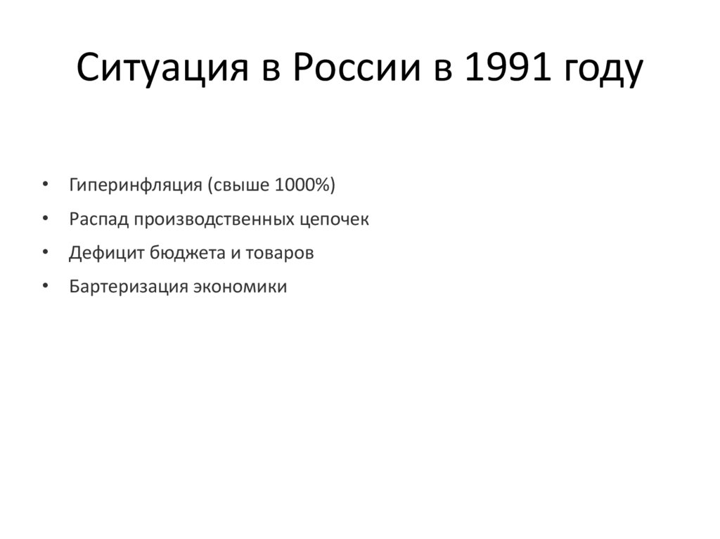 Ситуация в России в 1991 году• Гиперинфляция (свыше 1000%)