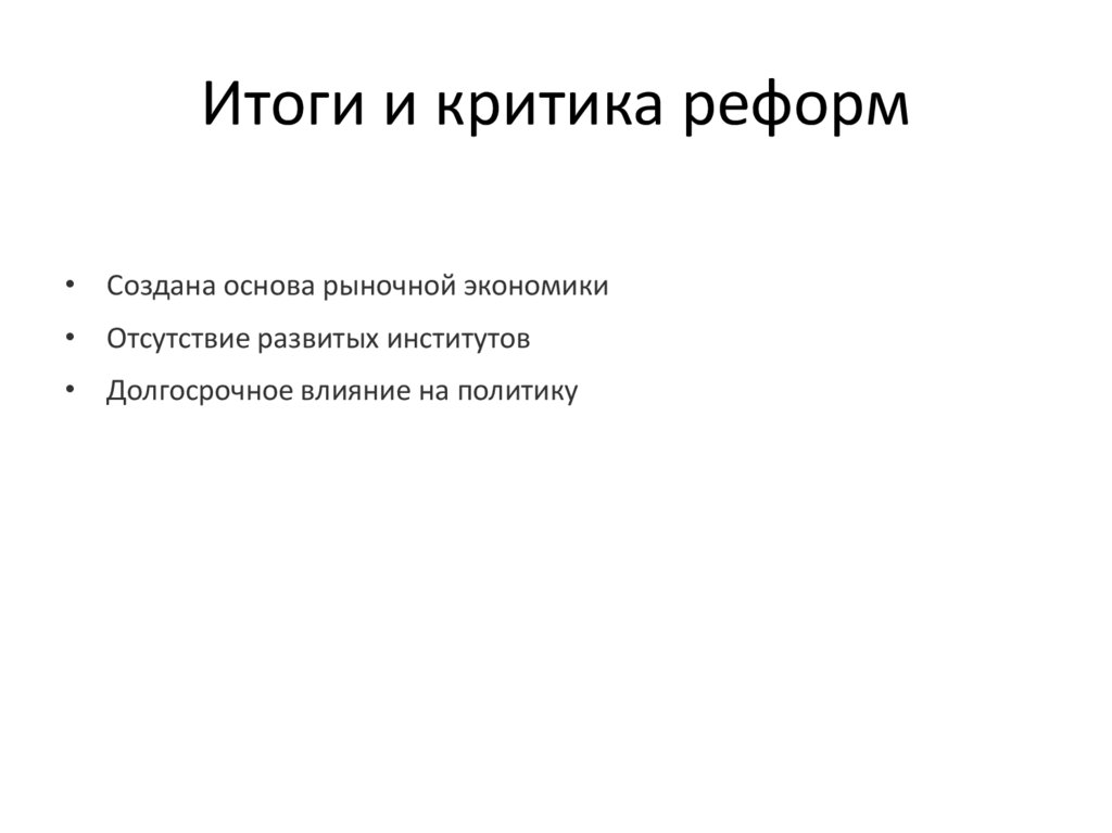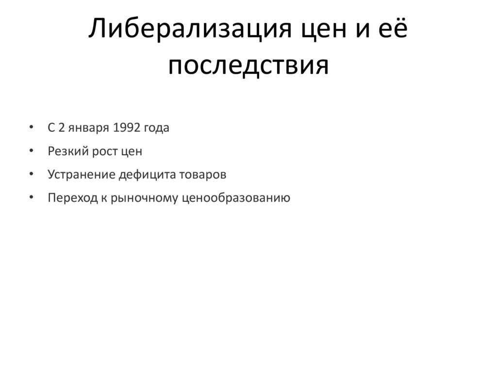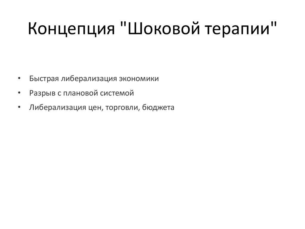 Концепция "Шоковой терапии"• Быстрая либерализация экономики