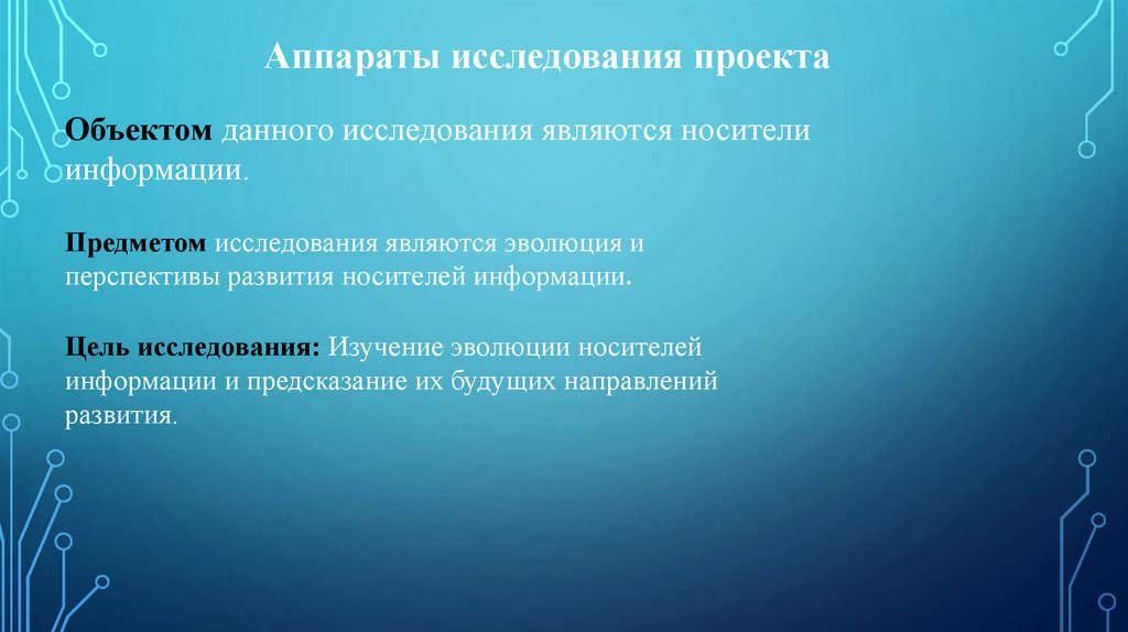 Аппараты исследования проектаОбъектом данного исследования являются носители