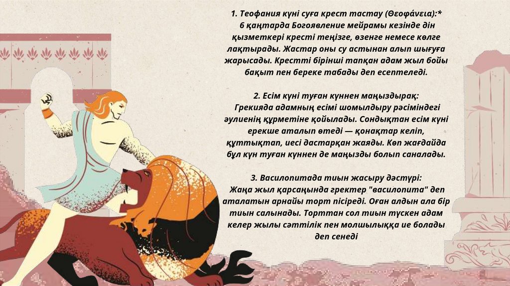 1. Теофания күні суға крест тастау (Θεοφάνεια):*6 қаңтарда Богоявление мейрамы кезінде дін