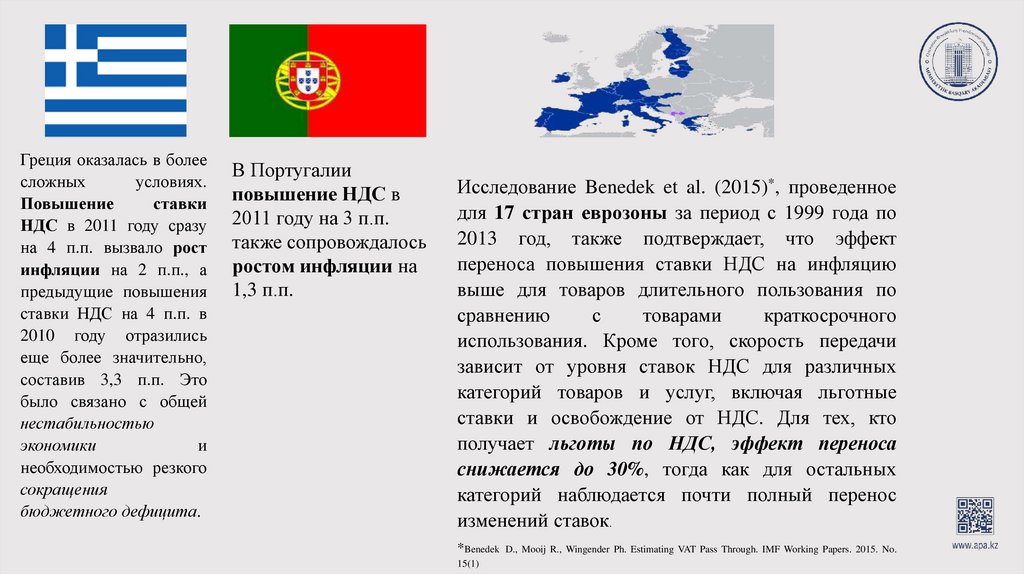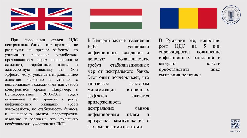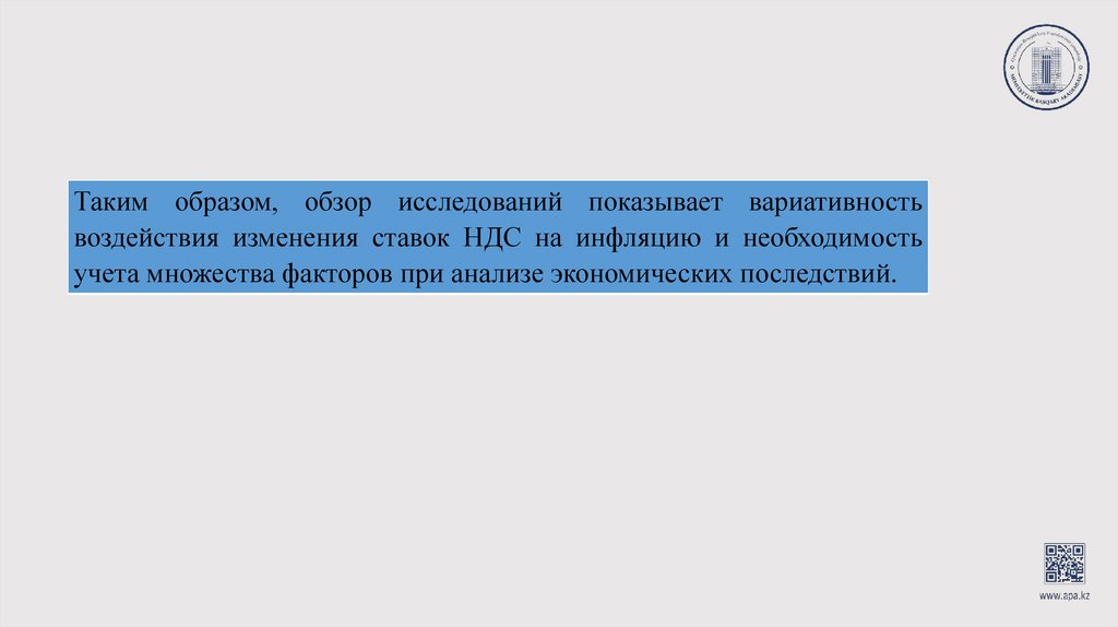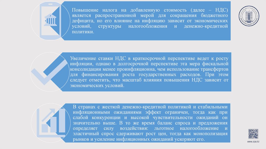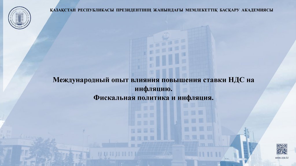 ҚАЗАҚСТАН РЕСПУБЛИКАСЫ ПРЕЗИДЕНТІНІҢ ЖАНЫНДАҒЫ МЕМЛЕКЕТТІҚ БАСҚАРУ АКАДЕМИЯСЫМеждународный опыт влияния повышения ставки НДС на