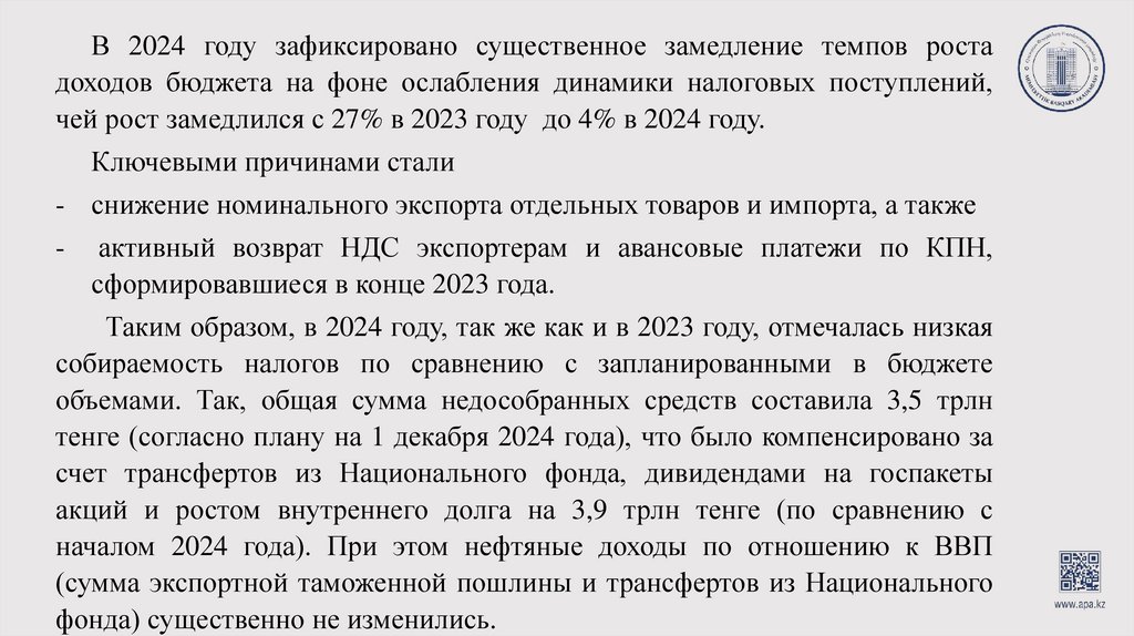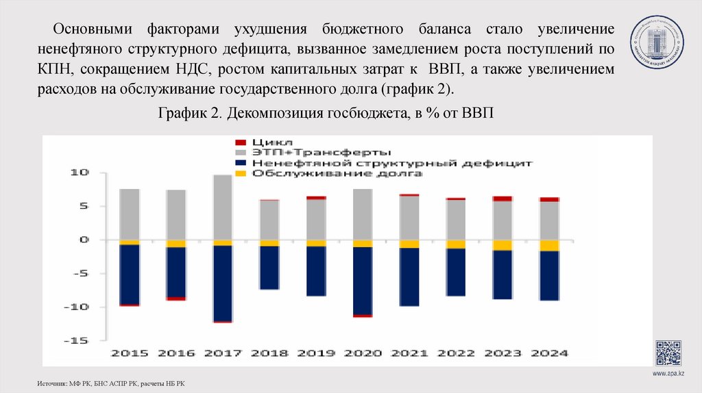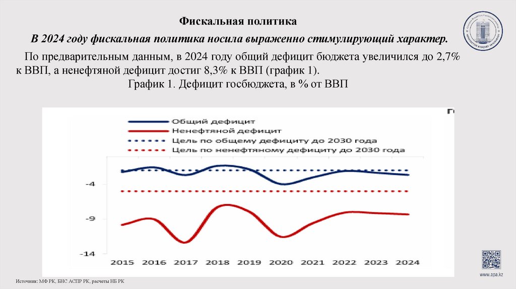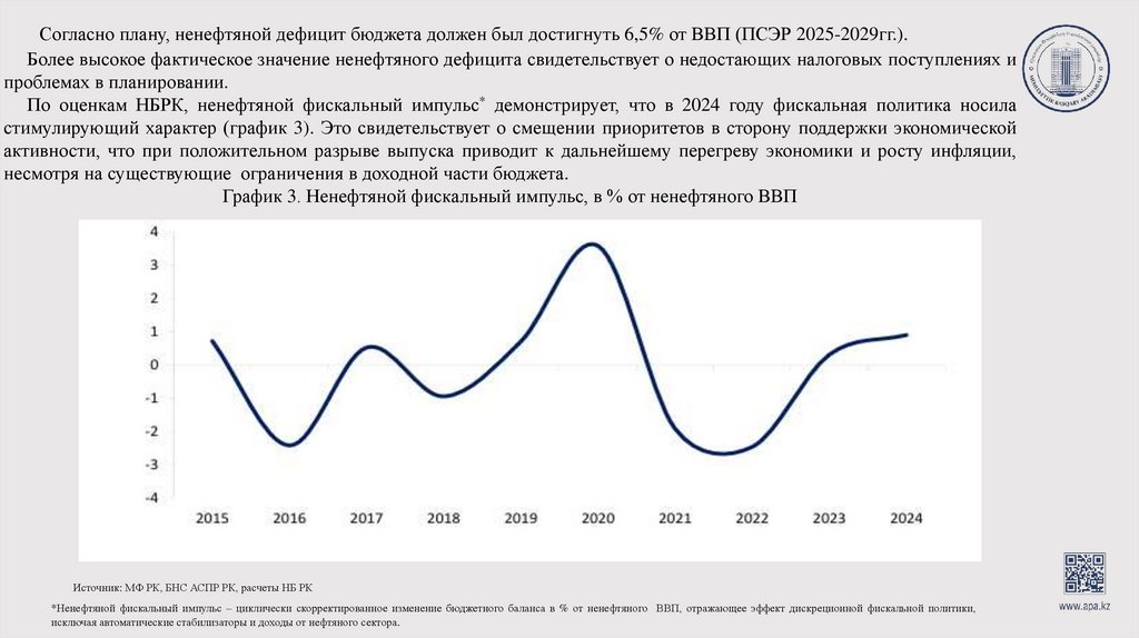 По оценкам НБРК, ненефтяной фискальный импульс* демонстрирует, что в 2024 году фискальная политика носила