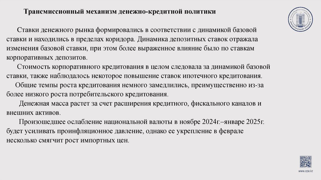 13. Трансмиссионный механизм денежно-кредитной политики Cтавки денежного рынка формировались в соответствии с динамикой базовой