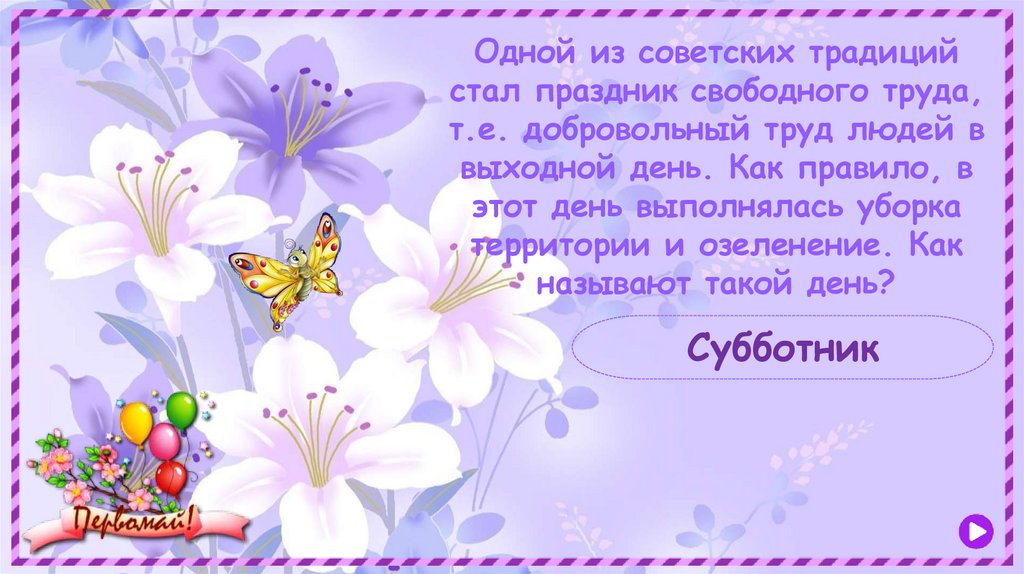 Первомайская. Познавательная викторина