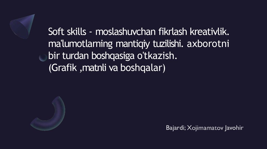 Soft skills - moslashuvchan fikrlash kreativlik.ma'lumotlarning mantiqiy tuzilishi. axborotni