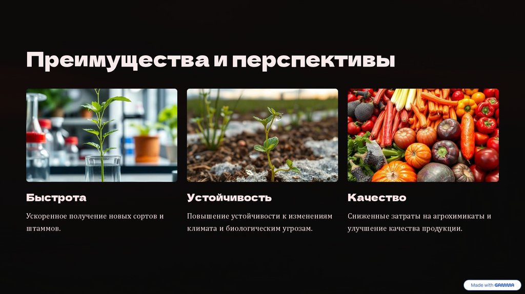 Создание сортов, устойчивых к засухе, вредителям и болезням.