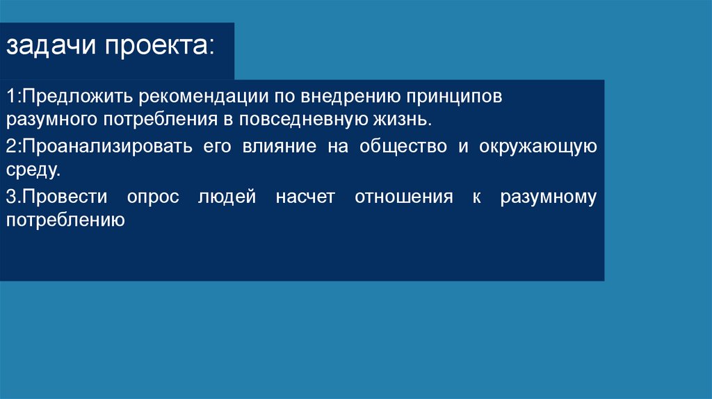 цель проекта:Изучить понятие разумного потребления и Предложить