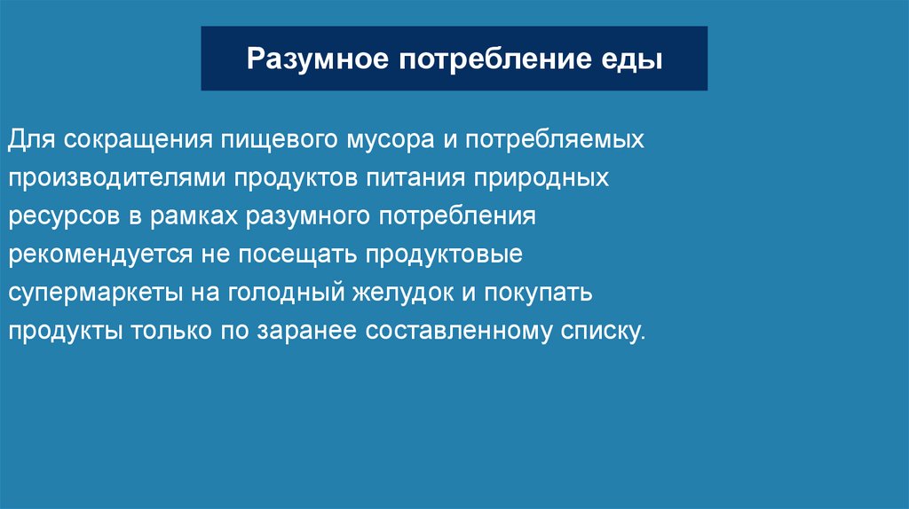 Разумное потребление едыДля сокращения пищевого мусора и потребляемых