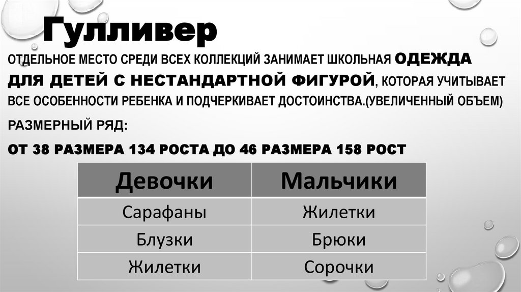 ГулливерОТДЕЛЬНОЕ МЕСТО СРЕДИ ВСЕХ КОЛЛЕКЦИЙ ЗАНИМАЕТ ШКОЛЬНАЯ ОДЕЖДА
