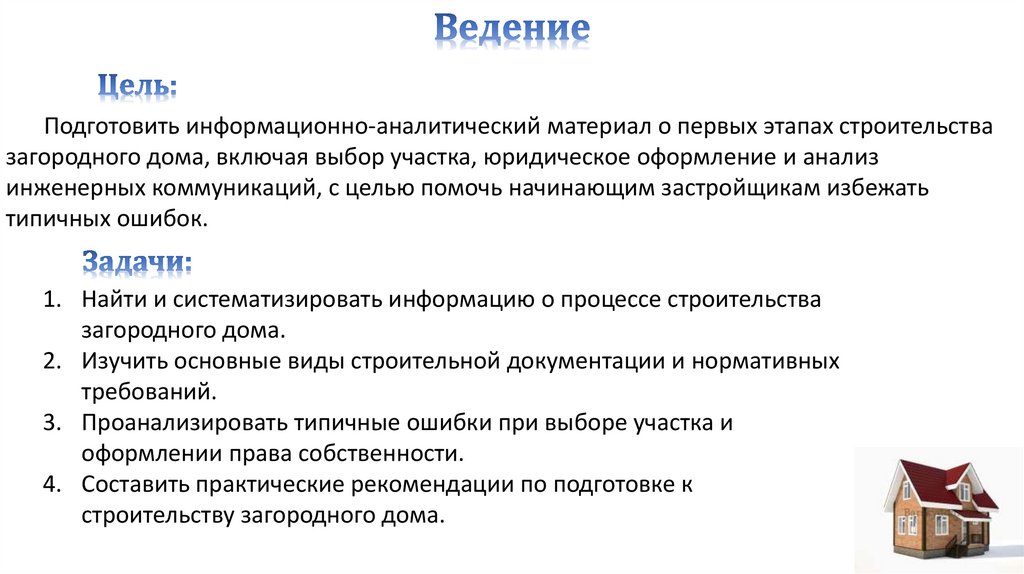Подготовить информационно-аналитический материал о первых этапах строительствазагородного дома, включая выбор участка, юридическое оформление и анализ