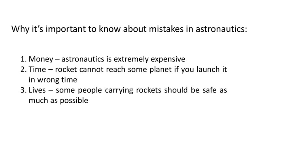 Why it’s important to know about mistakes in astronautics:1. Money – astronautics is extremely expensive
