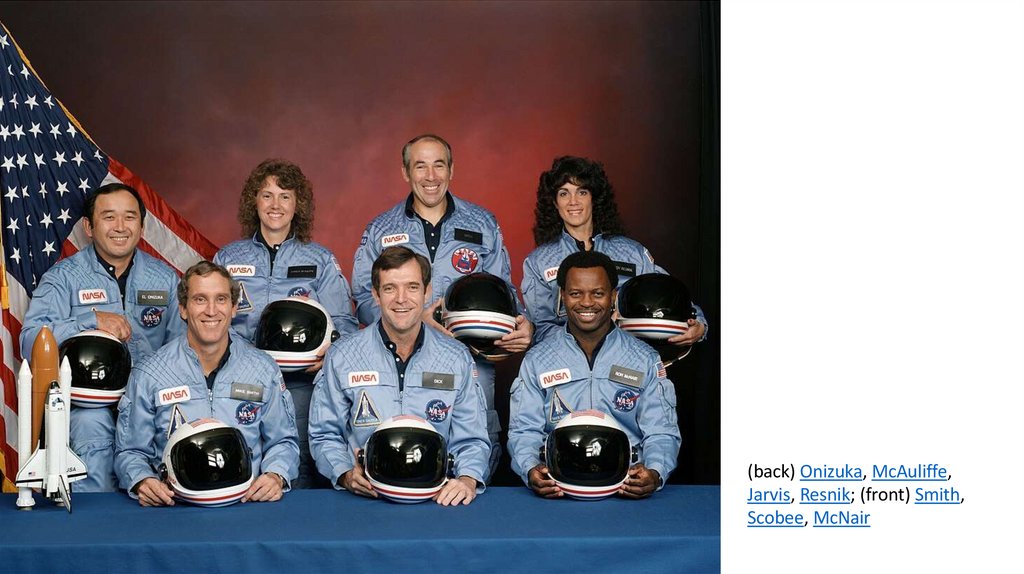 (back) Onizuka, McAuliffe,Jarvis, Resnik; (front) Smith,