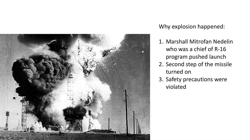 Why explosion happened:1. Marshall Mitrofan Nedelin