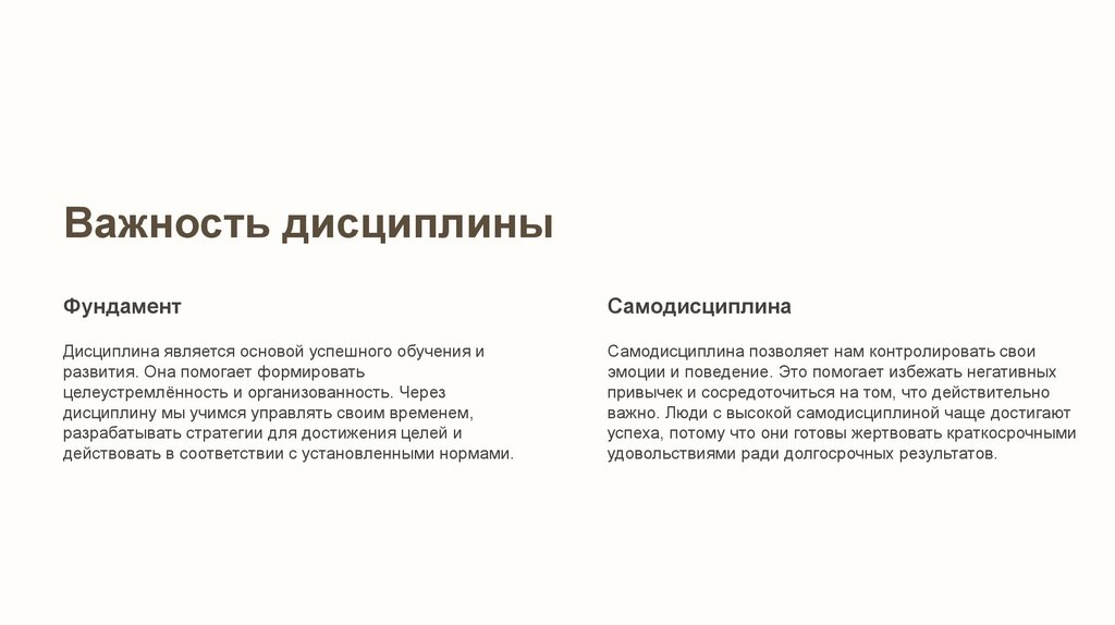 понимать, зачем важна дисциплина. Это обеспечивает не