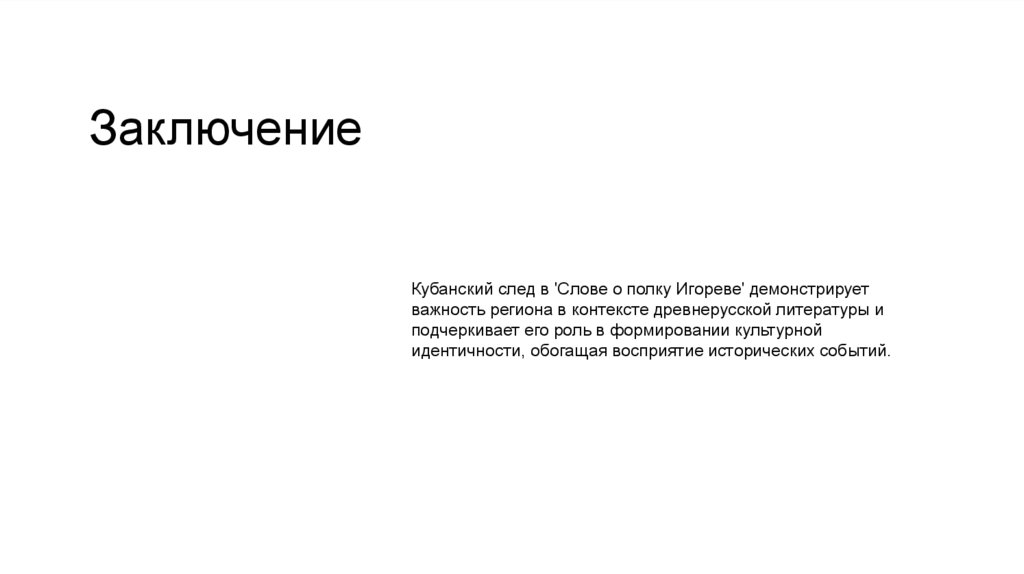 ЗаключениеКубанский след в 'Слове о полку Игореве' демонстрирует