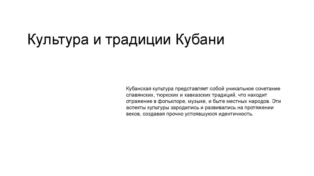 Культура и традиции КубаниКубанская культура представляет собой уникальное сочетание
