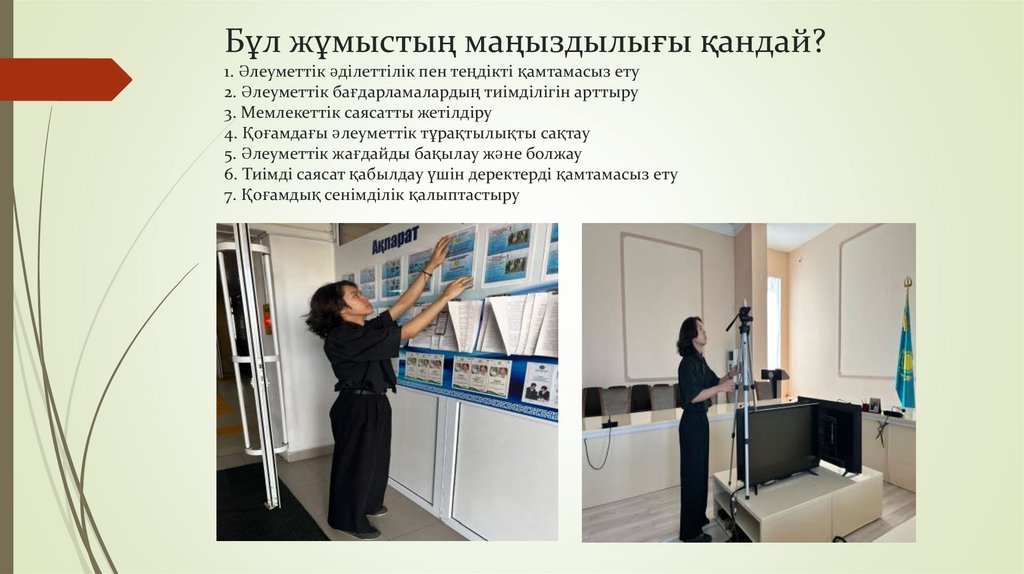 5. Бұл жұмыстың маңыздылығы қандай? 1. Әлеуметтік әділеттілік пен теңдікті қамтамасыз ету 2. Әлеуметтік бағдарламалардың