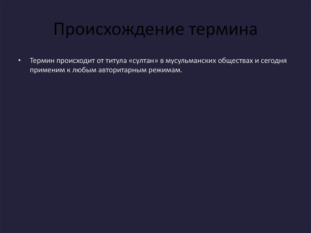 Происхождение терминаТермин происходит от титула «султан» в мусульманских обществах и сегодня