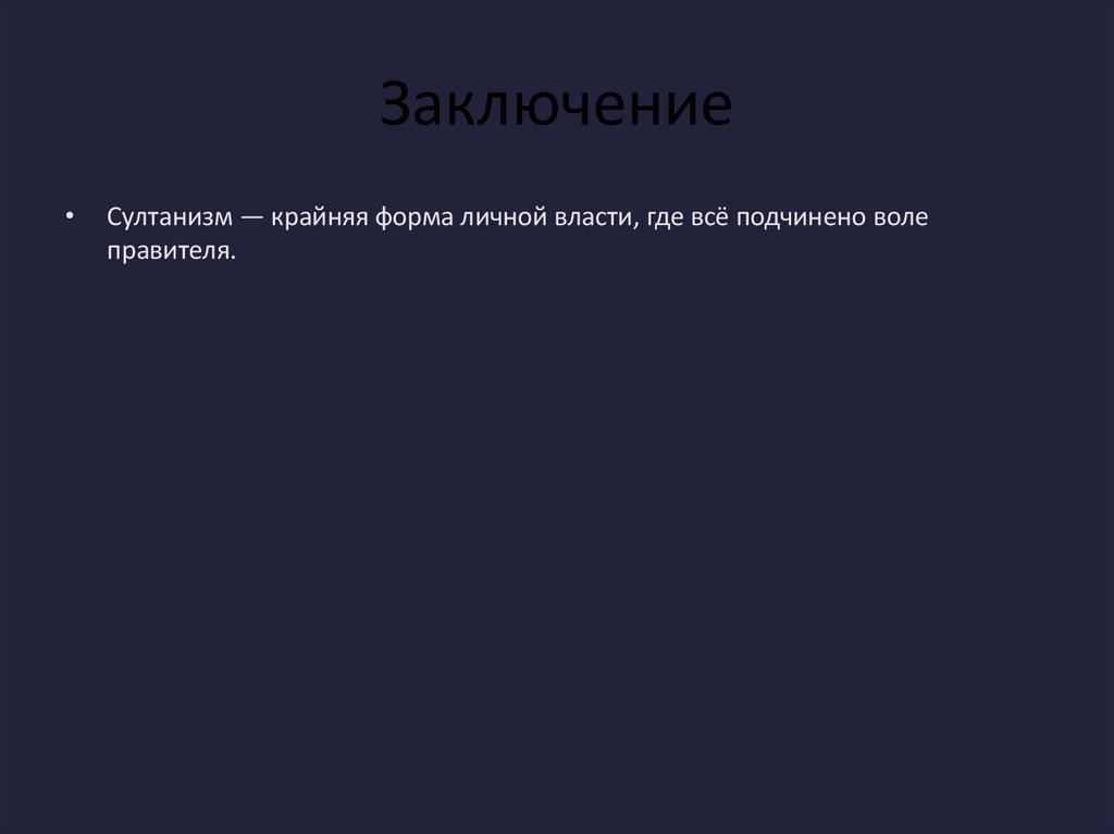 ЗаключениеСултанизм — крайняя форма личной власти, где всё подчинено воле