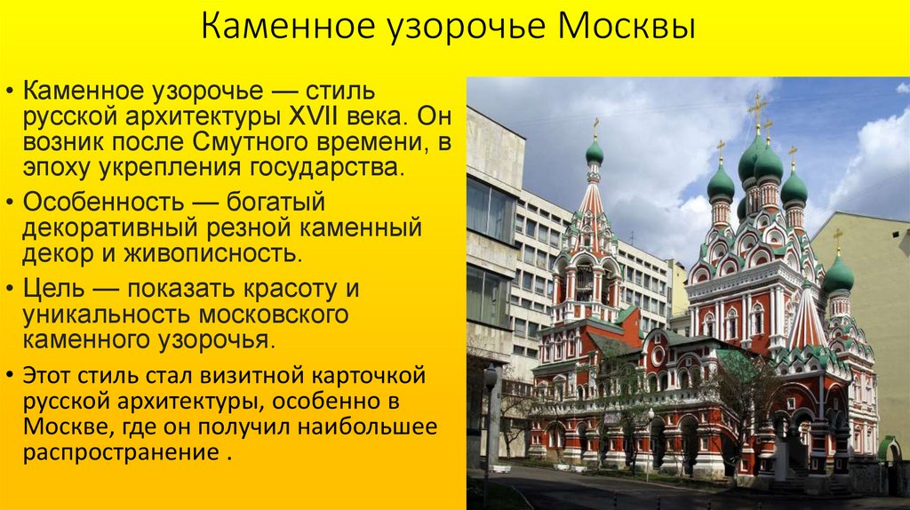 Каменное узорочье Москвы• Каменное узорочье — стиль