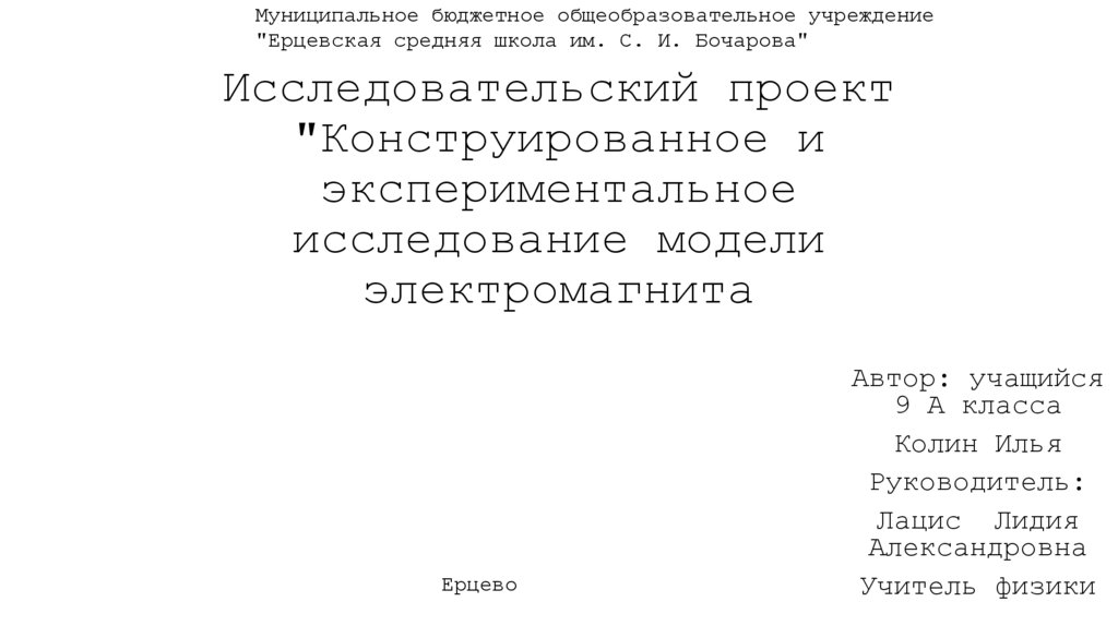 1. Исследовательский проект "Конструированное и экспериментальное исследование модели электромагнита
