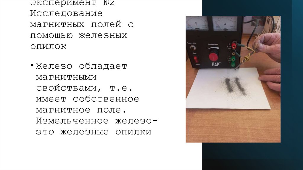 11. Эксперимент №2 Исследование магнитных полей с помощью железных опилок