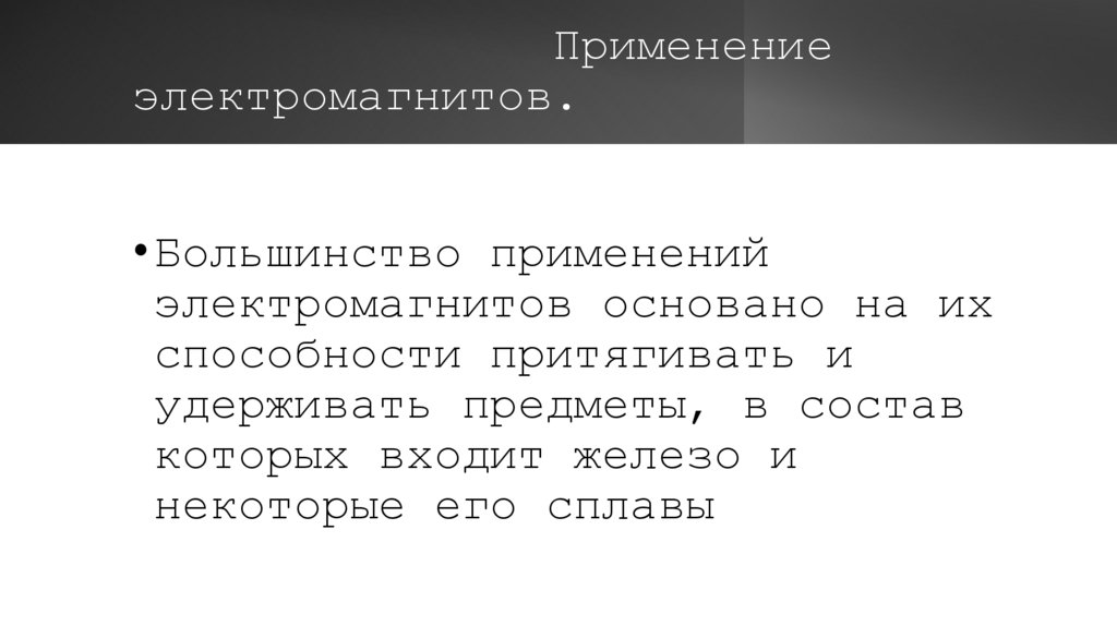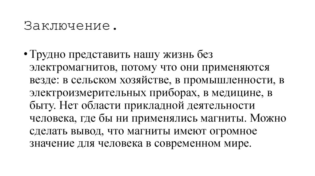 • Трудно представить нашу жизнь безэлектромагнитов, потому что они применяются