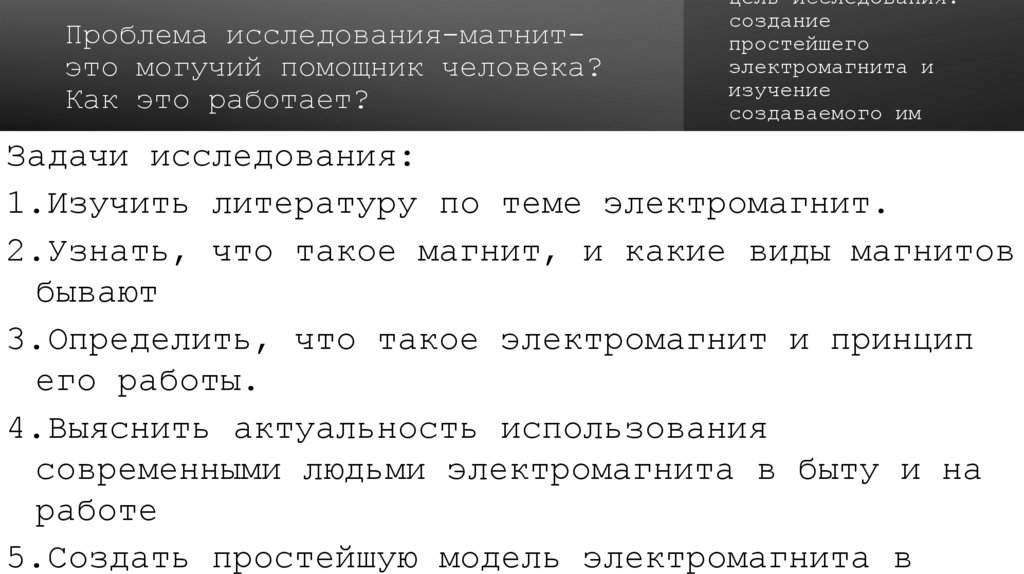 Проблема исследования-магнитэто могучий помощник человека?Как это работает?