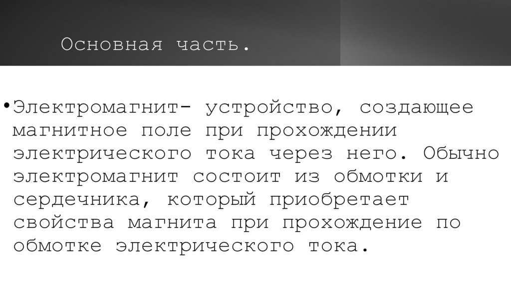 • Электромагнит- устройство, создающеемагнитное поле при прохождении