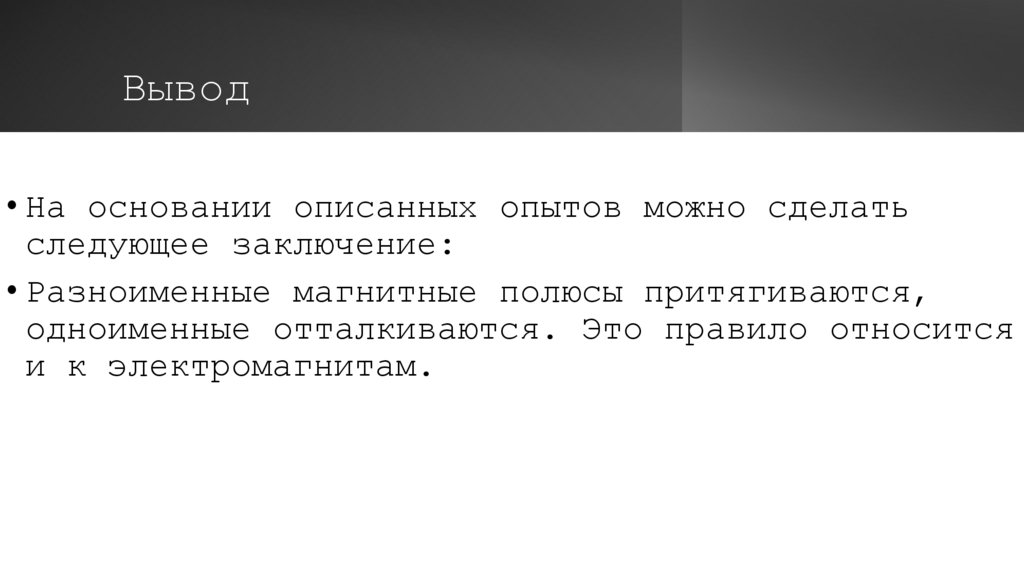 9. Исследование магнитных полей электромагнитов Эксперимент № 1 определение опытным путем полюсов электромагнита.
