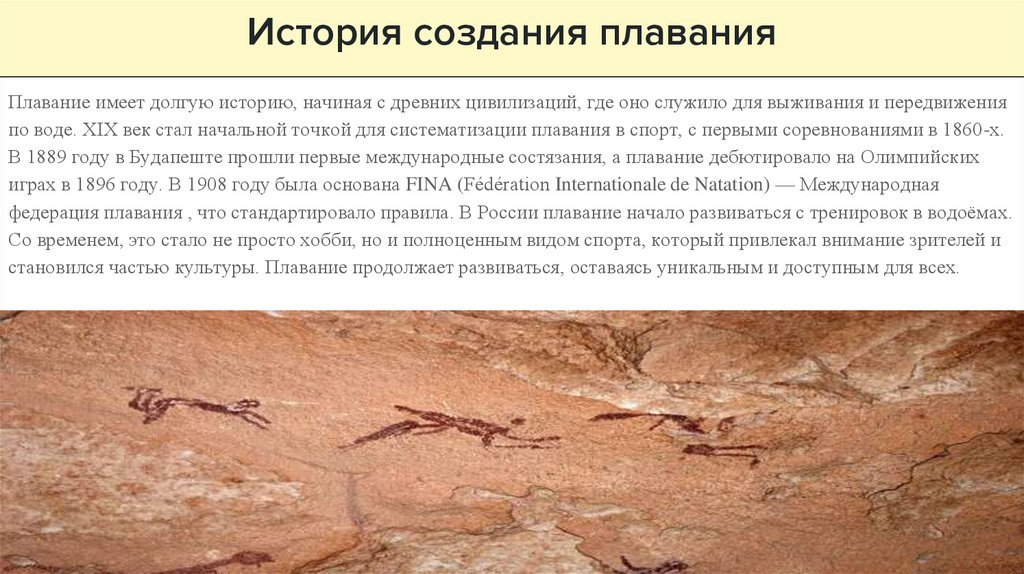 становился частью культуры. Плавание продолжает развиваться, оставаясь уникальным и доступным для всех.
