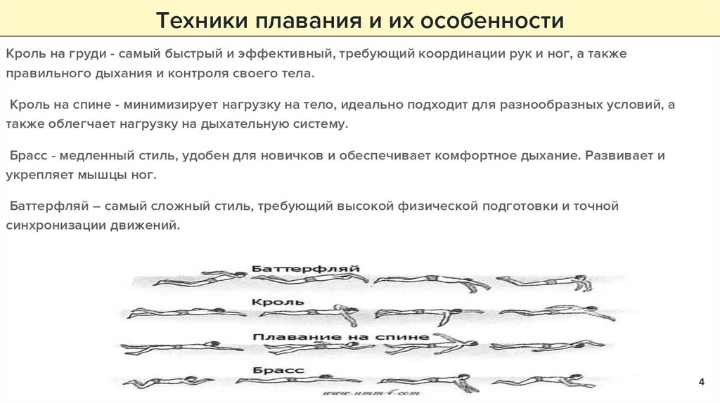 4. Техники плавания и их особенности