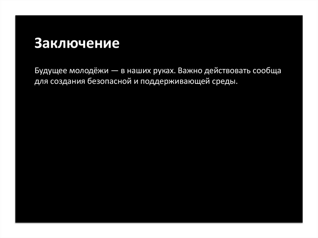 ЗаключениеБудущее молодёжи — в наших руках. Важно действовать сообща
