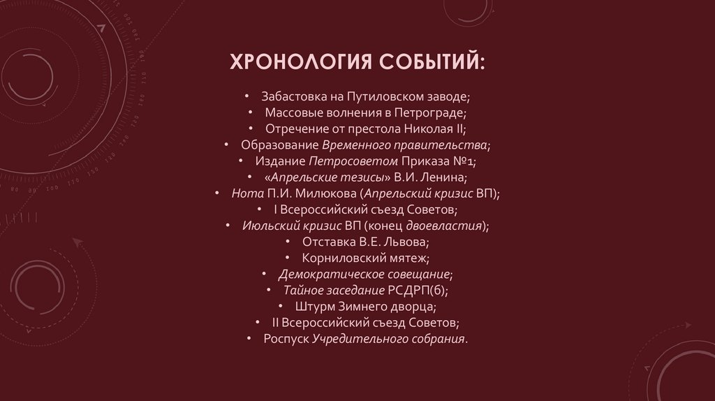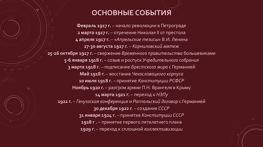 ОСНОВНЫЕ СОБЫТИЯФевраль 1917 г. – начало революции в Петрограде