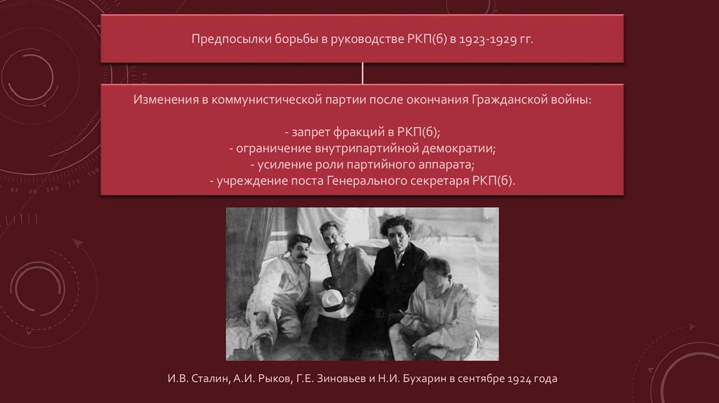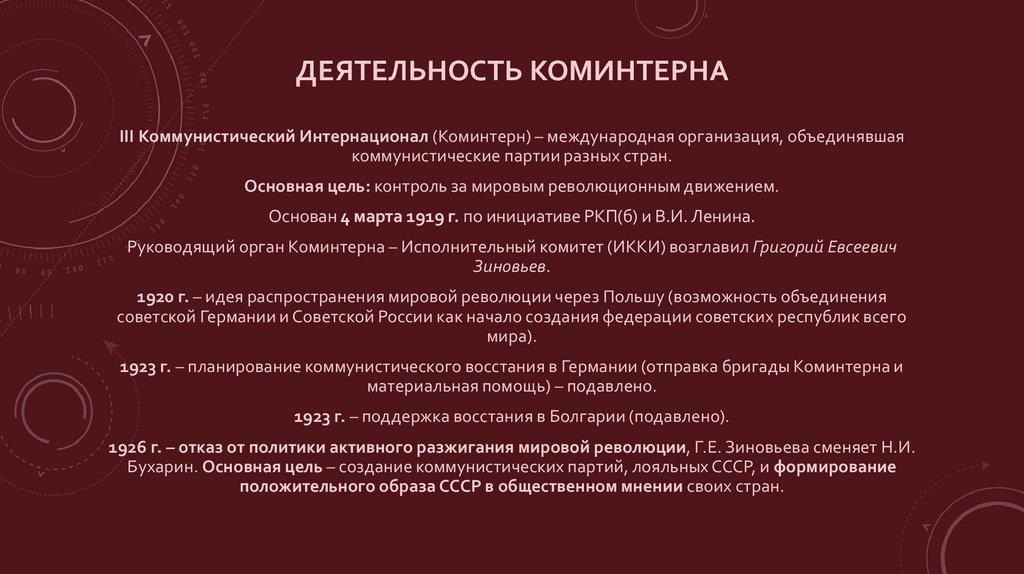 1926 г. – отказ от политики активного разжигания мировой революции, Г.Е. Зиновьева сменяет Н.И.