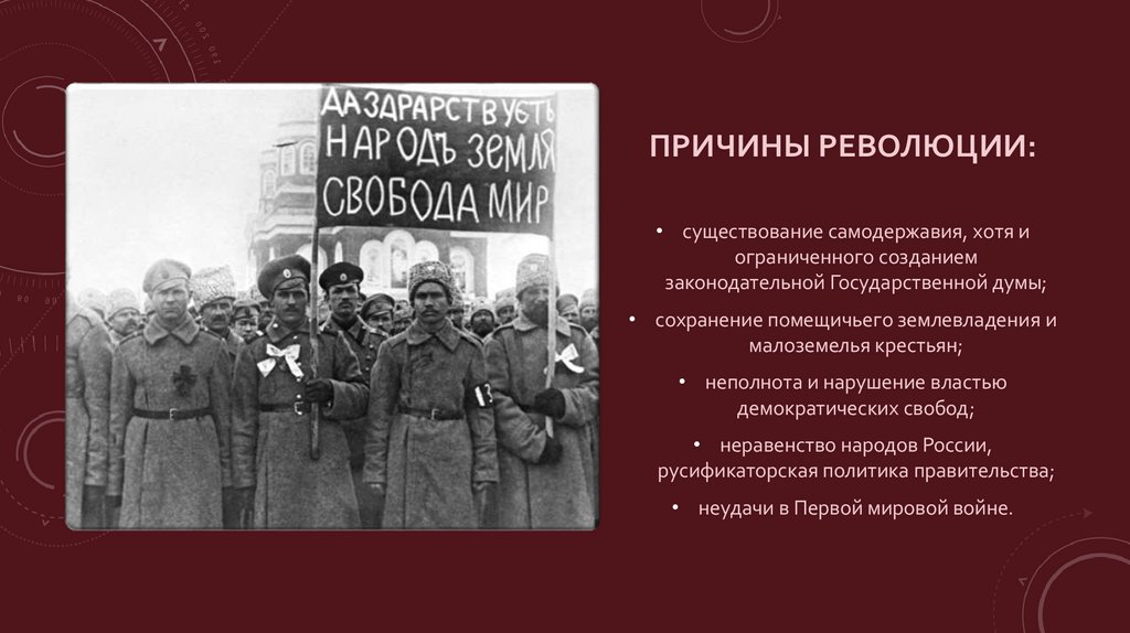 ПРИЧИНЫ РЕВОЛЮЦИИ:• существование самодержавия, хотя и