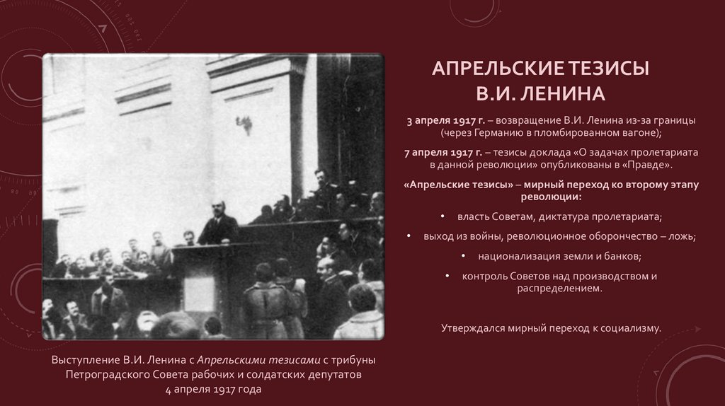 4 апреля 1917 г. – «Апрельские тезисы» В.И. Ленина