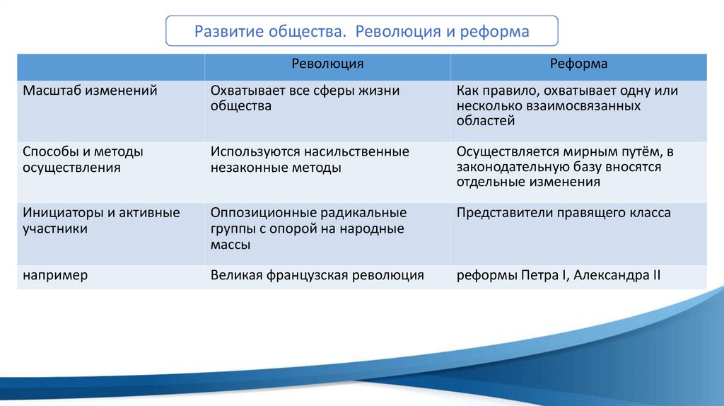 Развитие общества. Революция и реформаРеволюция