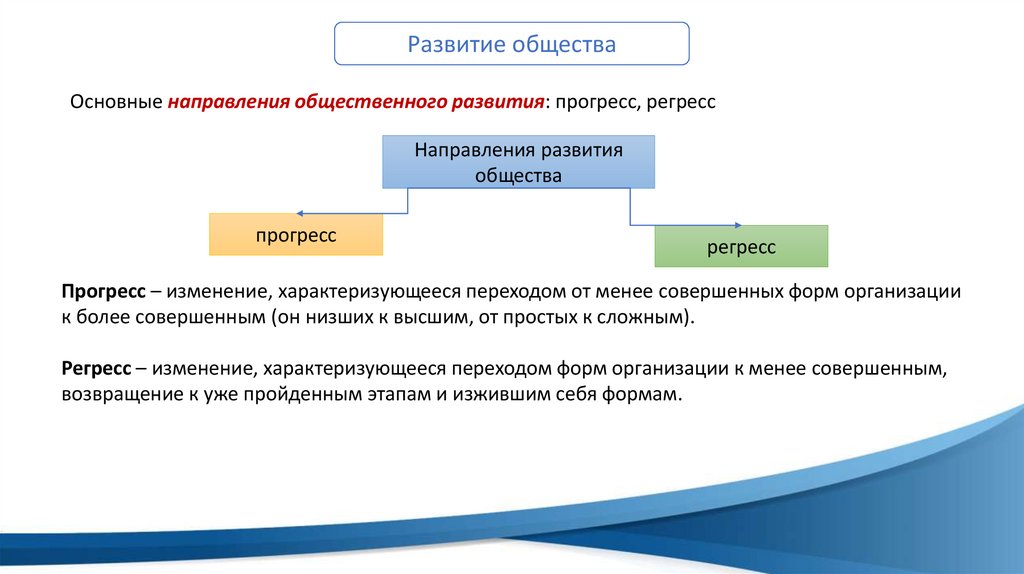 Развитие обществаОсновные направления общественного развития: прогресс, регресс