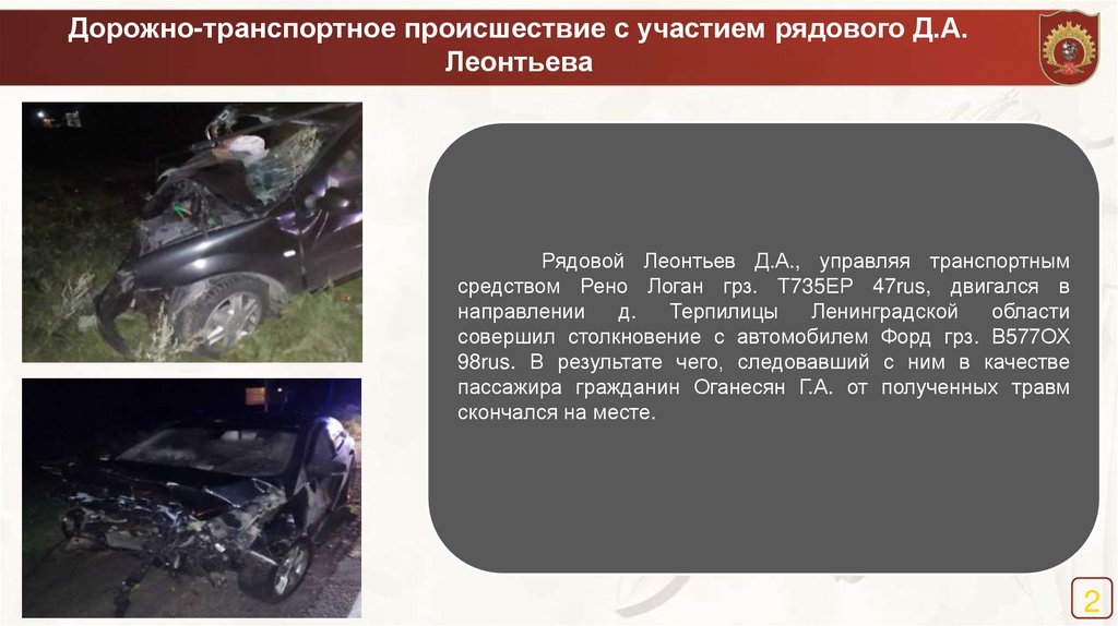Дорожно-транспортное происшествие с участием рядового Д.А.Леонтьева