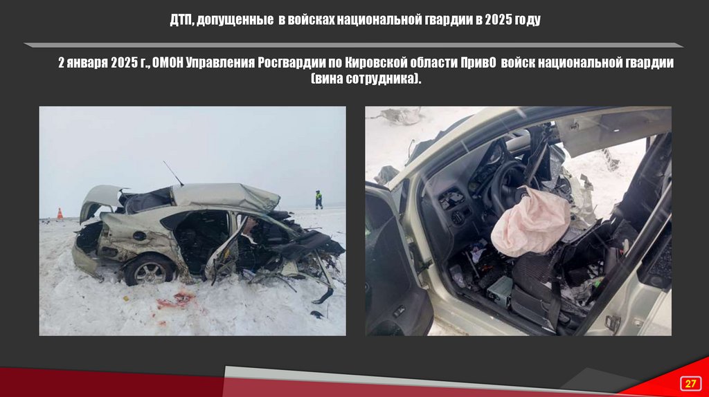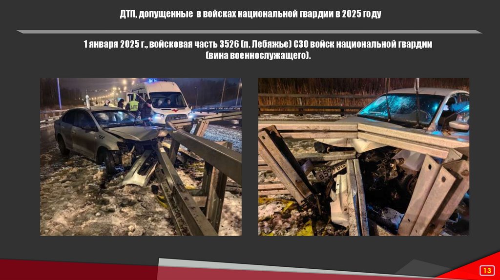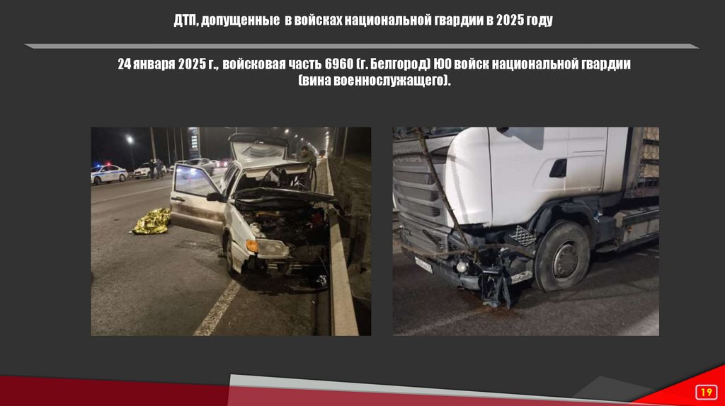 ДТП, допущенные в войсках национальной гвардии в 2025 году24 января 2025 г., войсковая часть 6960 (г. Белгород) ЮО войск национальной гвардии